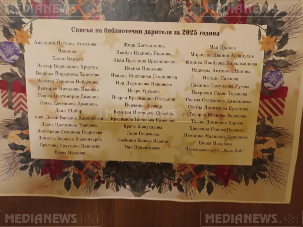 Главният библиотекар Павлина Русева благодари на всички читатели и на десетките дарители, които непрекъснато допринасят за обогатяването на библиотеката.