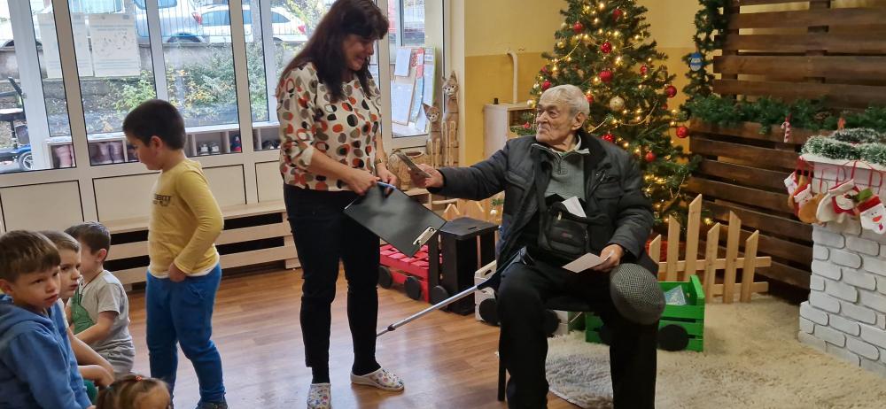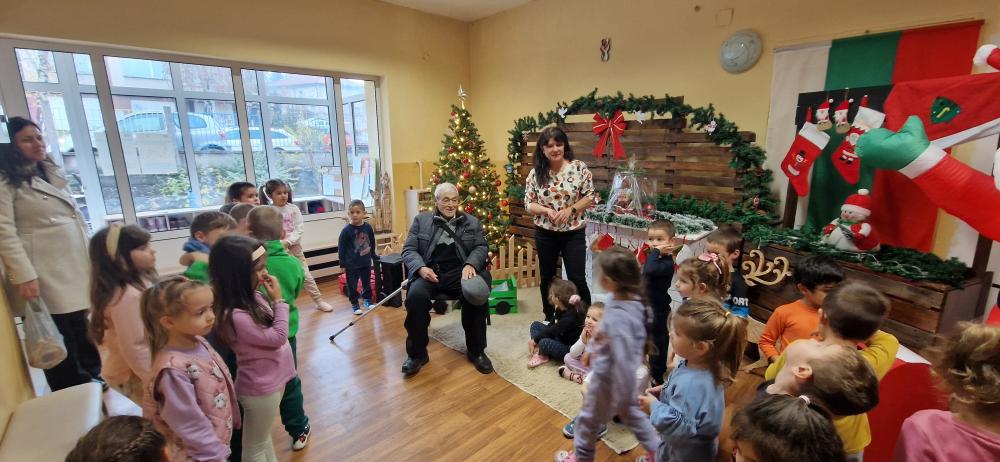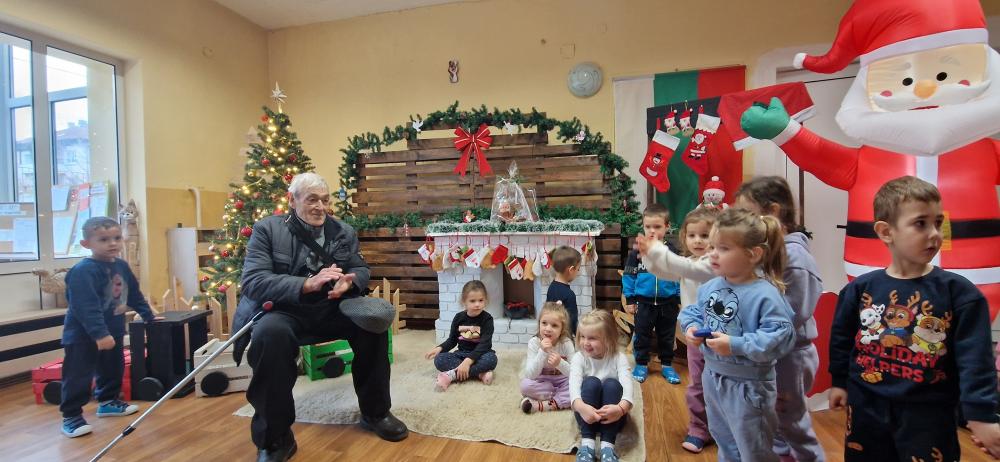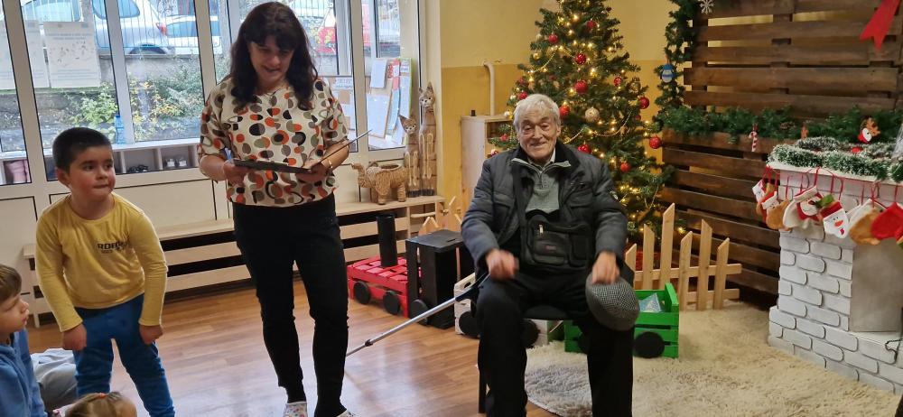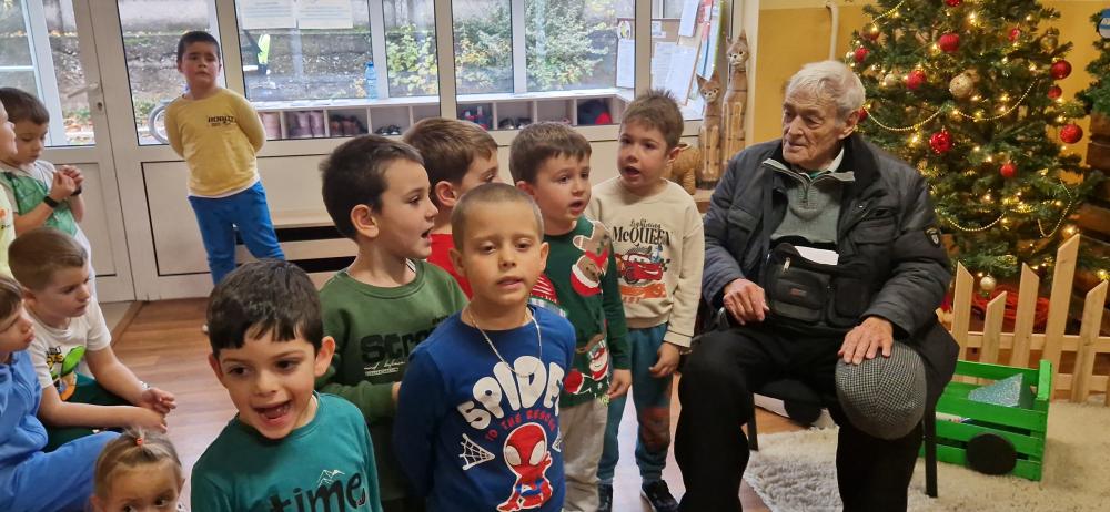 Срещата между поколенията бе повече от вълнуваща. Децата посрещнаха дядо Митко, забавлявахме се заедно, а той им прочете стихотворение, специално написано за децата на ДГ "Роза" .