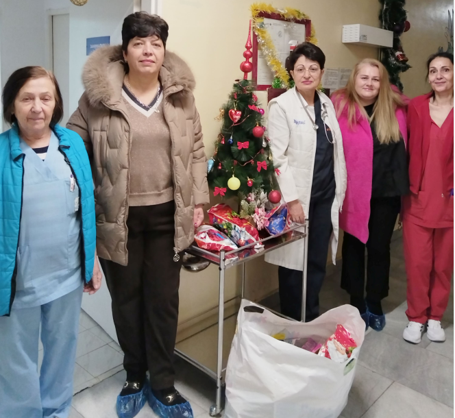 Дарението прие с благодарност началникът на отделението д-р Веселка Павлова. С тази инициативна психологът в ДГ „Детелина“ Цветелина Иванова напомни на всички, че Коледа не е време само за подаръци, а за даряване, споделяне и грижа и че заедно можем повече.“
