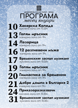 С януарската си програма Драматично-куклен театър – Враца заявява още в началото на 2026 година своята последователна политика за жанрово разнообразие и активен диалог с публиката.