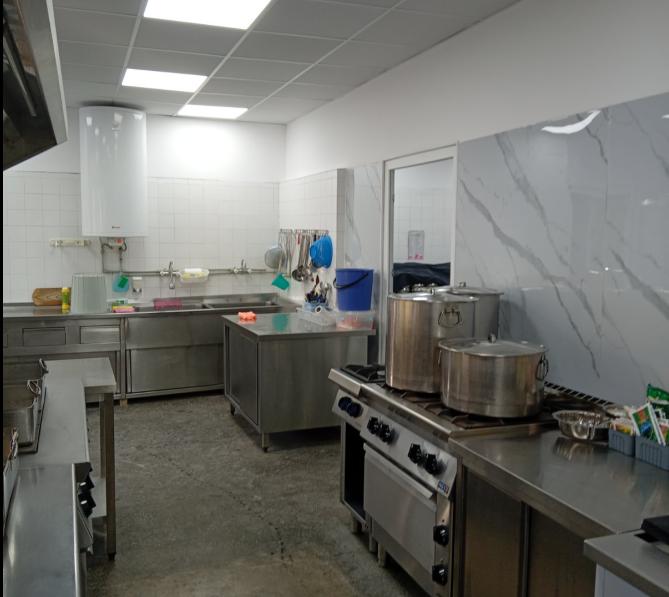 Миналата година, отново по проект, финансиран съвместно с Фонд „Социална закрила“, бе доставено и монтирано ново професионално кухненско оборудване и обзавеждане, включващо: електрическа и газова печка, скара, хладилници, фризер, аспирационен чадър, съдомиялни машини, пасатор, зеленчукорезачка, картофобелачка, работен шкаф, стелаж, професионални тави, както и три броя инверторни климатици за отопление и охлаждане на помещенията на ДСП – Берковица.
