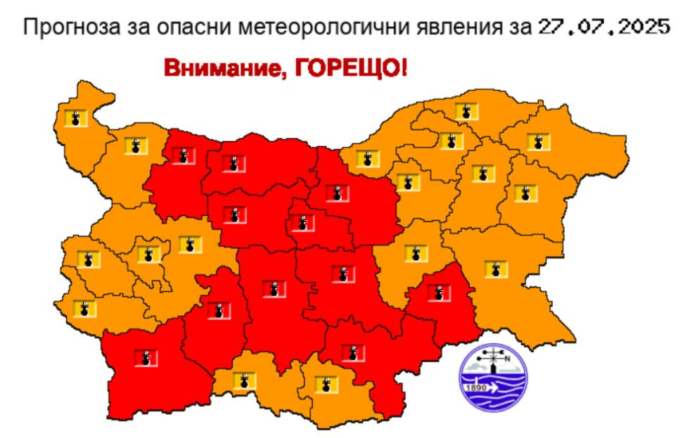 Максималните температури ще са между 37° и 42°, в София - около 37°.
