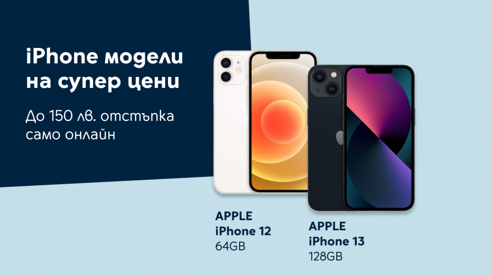 До края на април iPhone 13 128GB се предлага със 150 лева отстъпка в онлайн магазина на Yettel. Цените на модела започват от 829,99 лева в брой и от 41,49 лева на месец при двугодишен лизинг с план Total Unlimited 64.99.