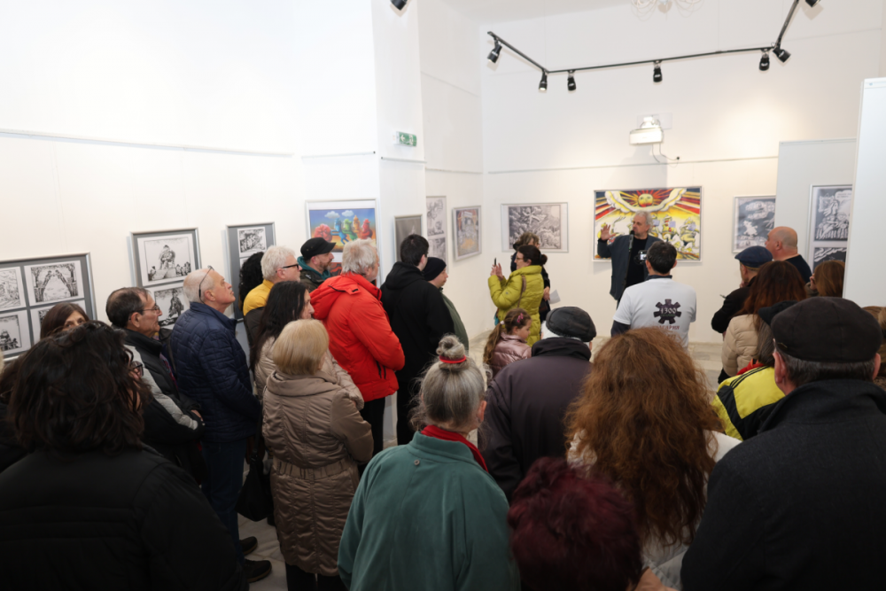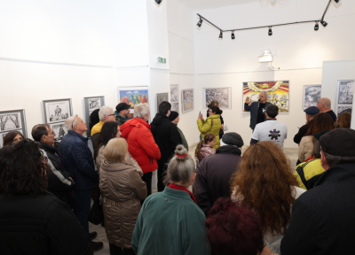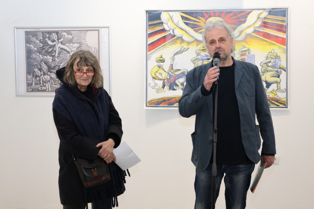 Ярки спомени и впечатления сподели съпругата на Чаушов – известната журналистка, носител на литературната награда „Елиас Канети“ Ивайла Александрова-Чаушова: "Впечатлена съм от Лом и ломчани, тук виждам жива традицията от Възраждането и вниманието, с което хората се отнасят към изкуството и културата.“ Тя акцентира върху най-известната творба на Георги Чаушов - „Хайдушко хоро“, която е център на изложбата. „Георги я нарисува и публикува през 1989 г., малко след демократичните промени. Изобразява едно хоро на управляващите. Води го Тодор Живков, който е паднал, но другите до него продължават да играят, крият си лицата с едната ръка и държат куфарчетата с пари с другата си ръка. Има нещо пророческо в това, както и в следващите творби на Георги." – каза Александрова.