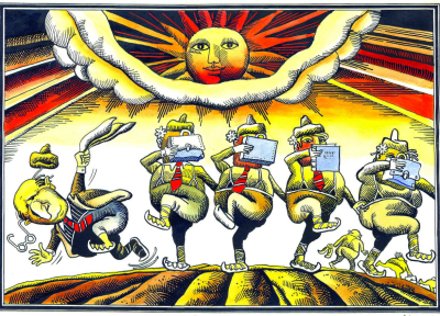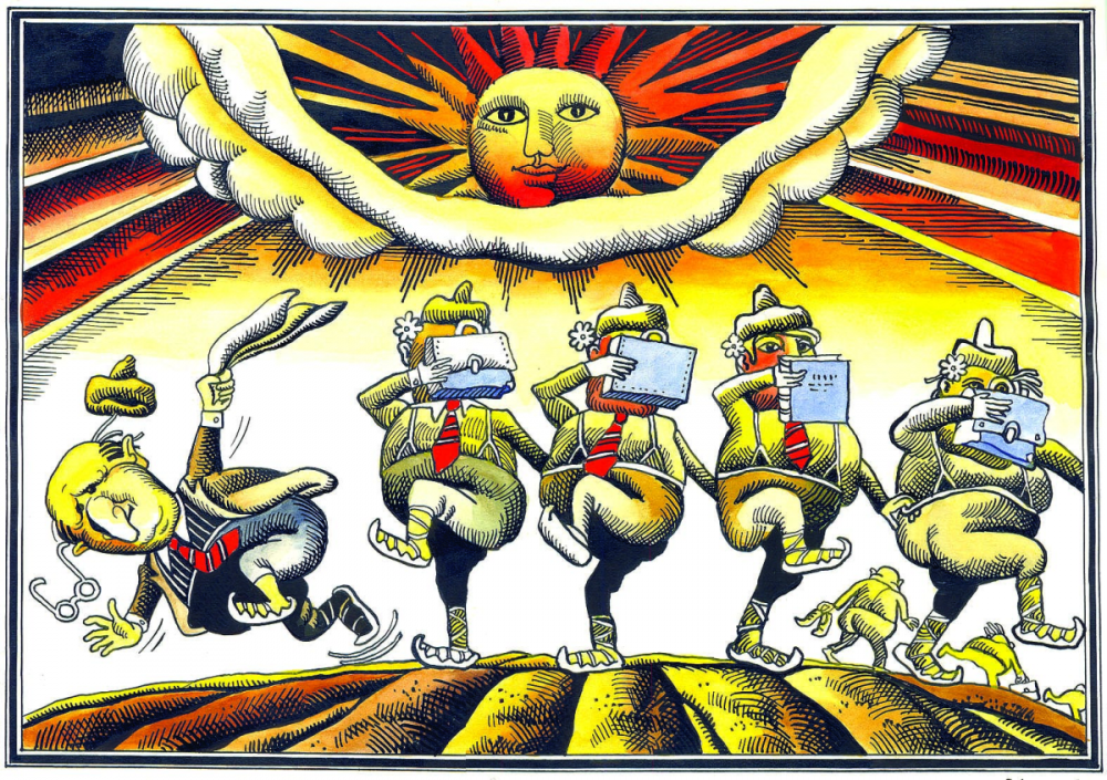 „Тези творби са правени преди и малко след демократичните промени. Това е една философска, многопланова, многопластова карикатура - и като мисъл, и като композиция. Няма да е пресилено ако кажа, че Георги Чаушов е за карикатурата това, което е Йордан Радичков за литературата. Каквото и да кажем за Чаушов, все ще е недостатъчно, предвид неговото изключително творческо многообразие и проникновеност.“ – каза Ивайло Цветков, карикатурист във в. "Телеграф", който представи изложбата на Георги Чаушов.