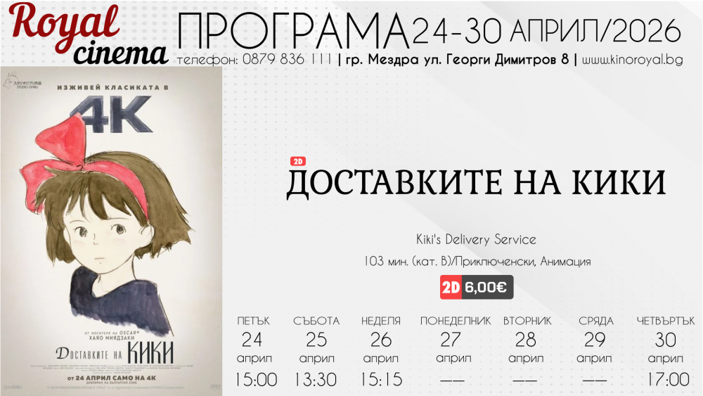 Там Кики започва малък бизнес за доставки, чрез който се опитва да направи живота на хората в градчето по-хубав. Но тежестта на многото ангажименти и напрежението да живее като пораснала започват да й натежават. Кики губи своята мотивация, а заедно с нея – и способността си да лети.