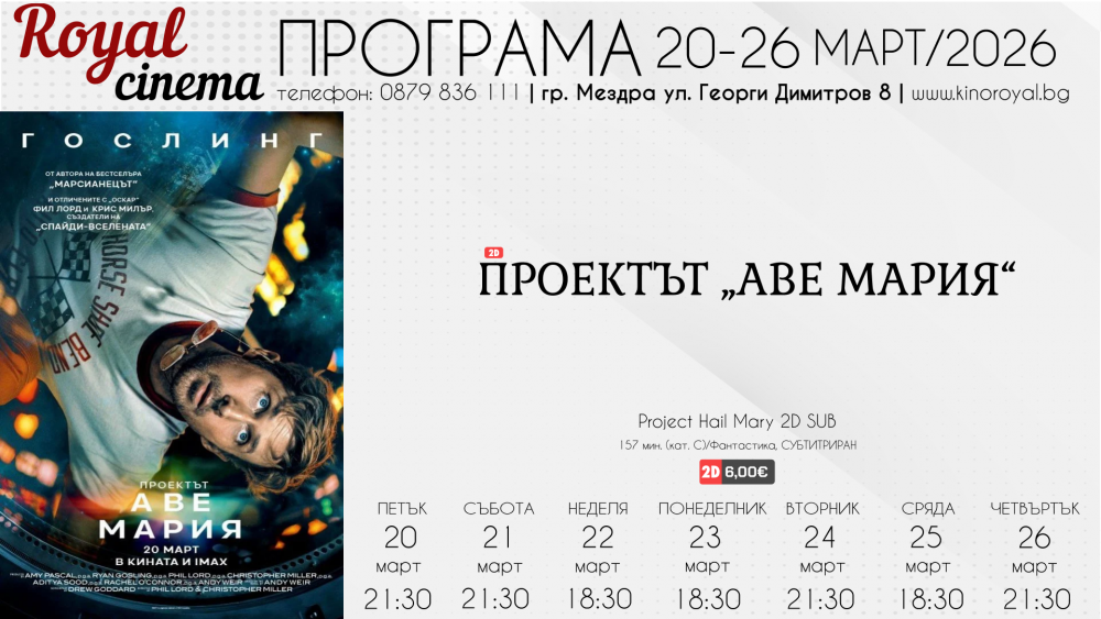 Проектът „Аве Мария“ ни запознава с Райлънд Грейс (Гослинг) – учител по природни науки, който се събужда на борда на космически кораб, без никакви спомени кой е, къде се намира и каква е мисията му. Постепенно Грейс си припомня истината: Земята е изправена пред глобална катастрофа, а той пътува към звездата Тау в съзвездието Кит като последна, отчаяна надежда за спасение на човечеството.