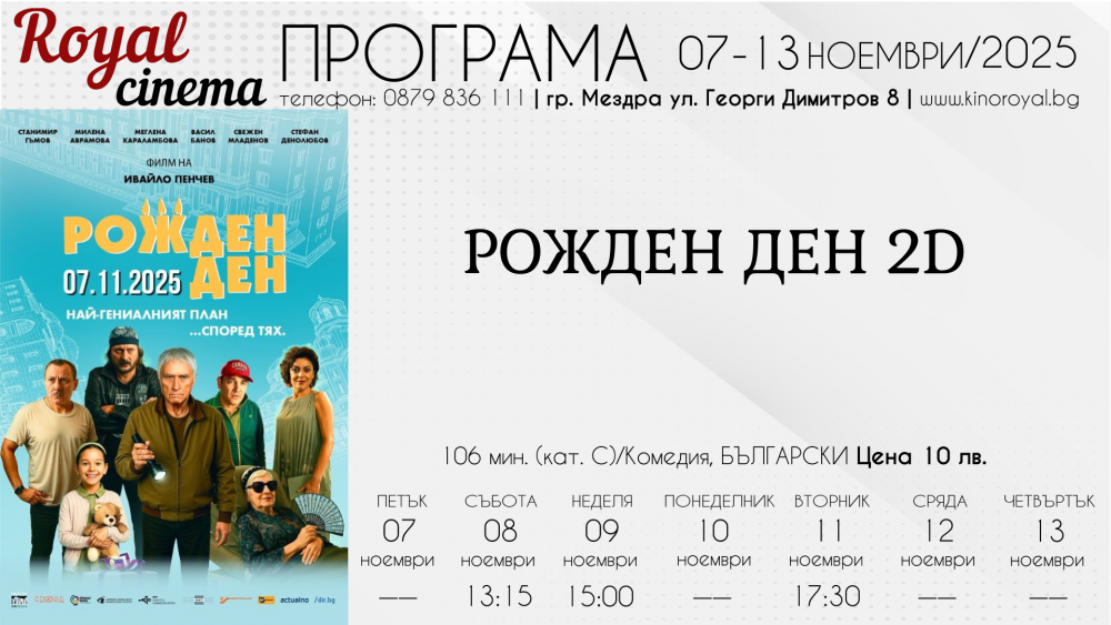 „Рожден ден“ е комедия за неочакваните срещи, абсурдната страна на живота и способността на хората да се променят – дори когато изглежда твърде късно. В центъра на разказа застават Баба Геновева (Меглена Караламбова), бившият затворник Васил (Васил Банов), трима приятели Сашо (Свежен Младенов), Краси (Странимир Гъмов), Любо (Стефан Денолюбов) и техният гениален план, който първоначално изглежда като обикновено криминално престъпление, но се оказва една от най-важните битки в живота им. Житейските избори и перипетии, пред които са изправени, ги въвличат в поредица от комични ситуации. А силата на духа и общата им цел, стопява различията помежду им и ги променя завинаги.