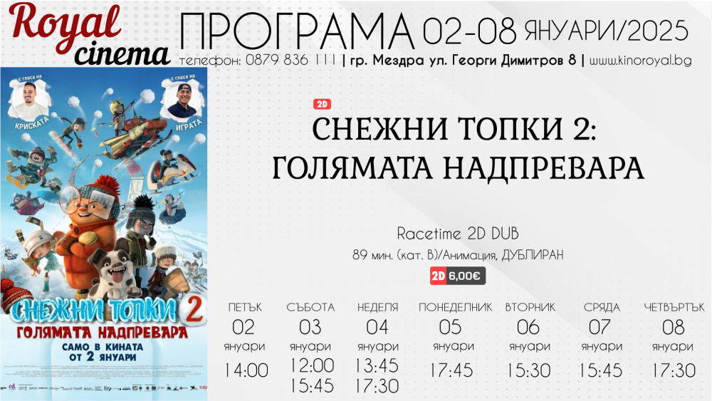 „Снежни Топки 2: Голямата надпревара“ е топла, забавна и вдъхновяваща зимна история – истинска снежна еуфория, изпълнена с игри, изобретения, неизвестни препятствия и искрени емоции. Филм, който ще ви разсмее, разчувства и ще напомни, че най-големите победи идват, когато играем честно и вярваме един в друг.