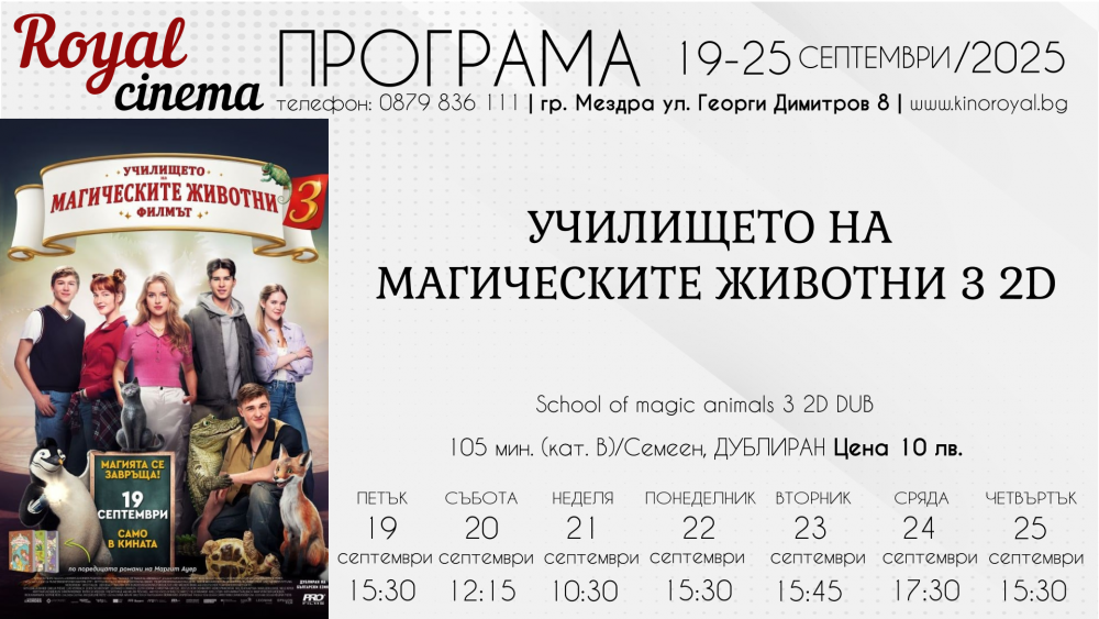 „Училището на магическите животни“ е очарователно филмово приключение, създадено по поредицата романи на Маргит Ауер, което отново се завръща на големия екран, за да зарадва малки и големи.