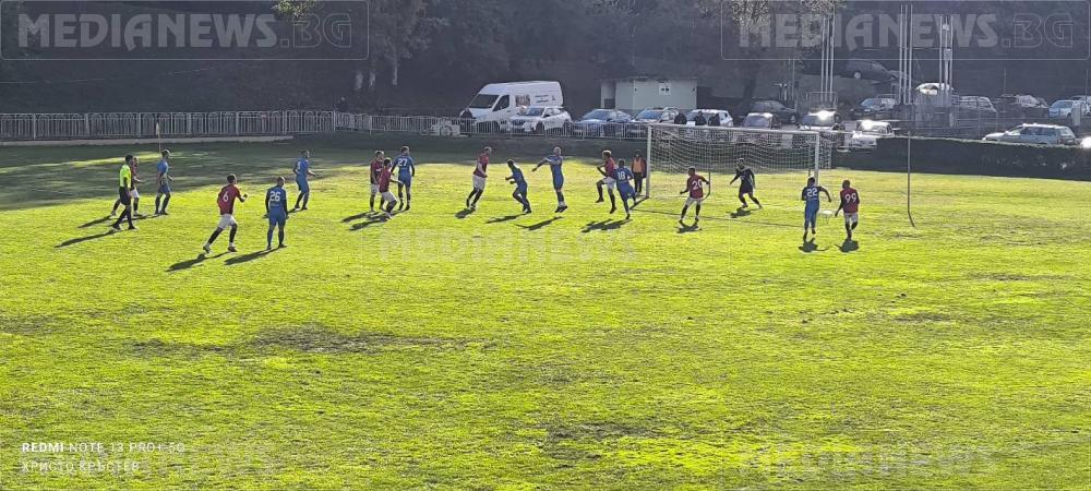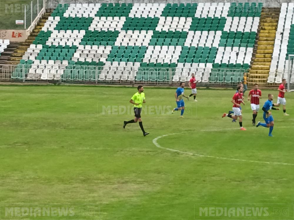 Отборът на Локомотив (Мездра) натисна гостите още с първия съдийски сигнал и наложи тотален териториален и игрови превес. Първата голова ситуация пред вратата на гостите бе в 8 м, когато Сергей Георгиев не успя да се възползва и да открие резултата. В 12 м домакините изпълниха поредния ъглов удар и Ивайло Тодоров засече с глава коженото кълбо за 1:0.