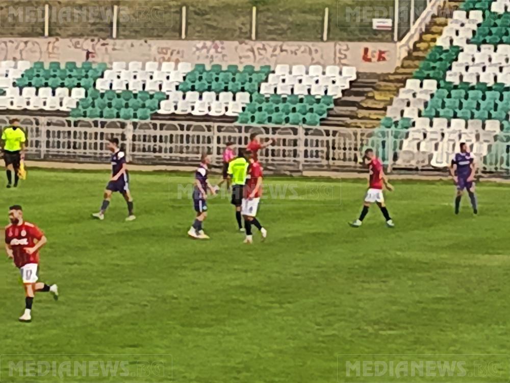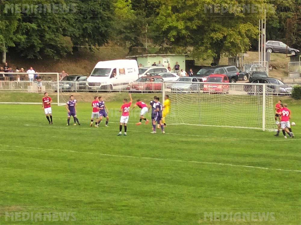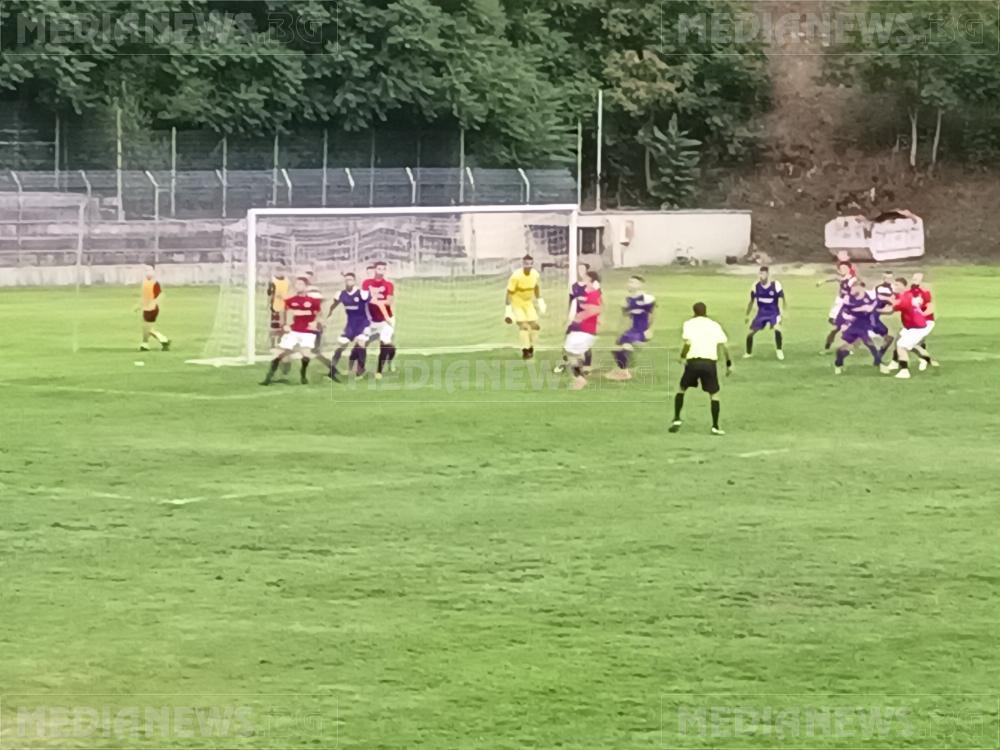 В 36-та мин домакините получиха право да изпълнят пряк свободен удар след поредното нарушение в половината на гостите, при който Кристиян Грозданов бе най – съобразителен след първоначалното спасяване от страна на „виолетовите“ стреля неспасяемо от границата на наказателното поле за 1:0.