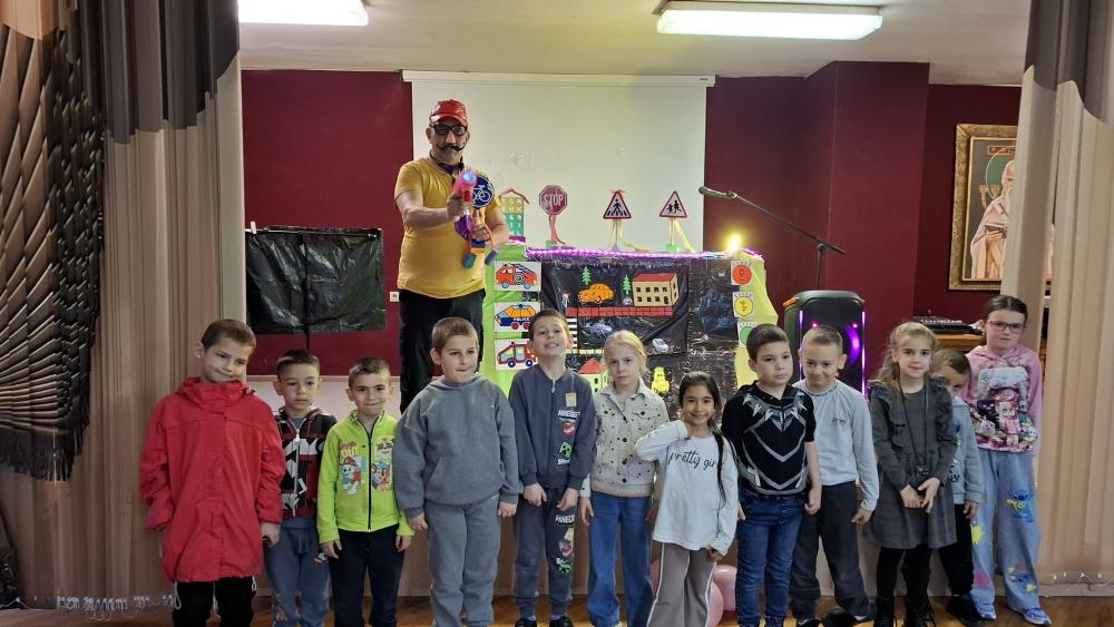 По време на представлението децата не бяха просто публика, а активни участници. Те разпознаваха пътни знаци, обсъждаха различни ситуации и даваха правилни решения.