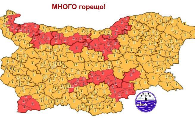 В останалата част на страната също няма да се усети прохлада, за всички останали области е обявено предупреждение от втора степен - оранжев код.