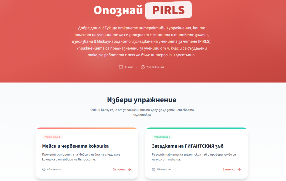 Виртуалното пространство може да бъде използвано в училище или самостоятелно, като част от ежедневната работа с четивни задачи. Упражненията не са подготовка конкретно за PIRLS, а възможност за спокойна и достъпна среща с различни видове литературни и информационни текстове, интерактивни въпроси и дигитална навигация в текста. Освен учениците платформата подпомага също учители и родители, представяйки им вида на съвременните задачи за четене, които се използват в международни изследвания.