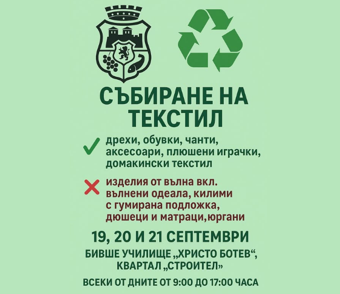 В рамките на кампанията ще могат безвъзмездно да бъдат предавани ненужни облекла и текстилни материали, като по този начин ще допринесат за опазването на околната среда и за намаляване на количествата депонирани отпадъци.