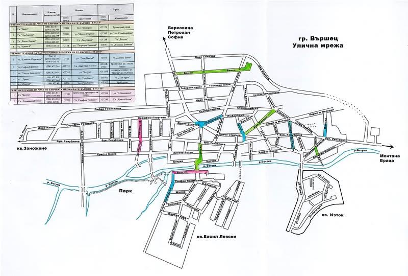 Трите договора са за „Реконструкция на част от уличната мрежа на гр. Вършец – етап I“ и включват реконструкция на улиците „Банкя“, „Цар Калоян“, „Васил Левски“ и „Антим I“. Общата стойност на безвъзмездната финансова помощ за изпълнението на този проект е 1 937 058 лева.