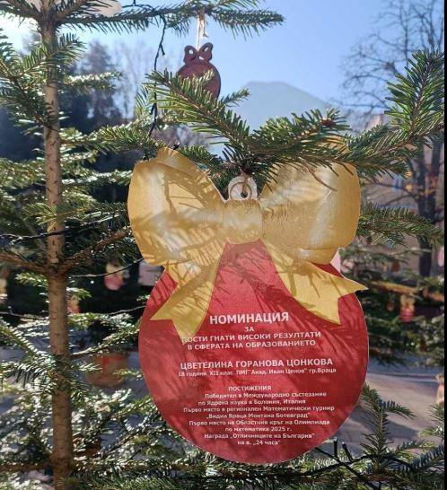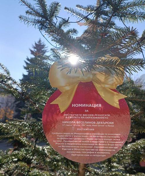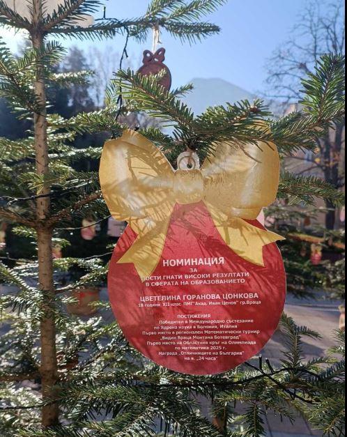 След края на празничните дни елхите ще бъдат засадени в паркова зона на Враца като траен знак на признание към младите хора, които с труд и талант развиват интелектуалния потенциал на региона.
