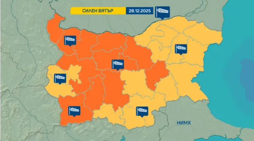Ще духа слаб, в Дунавската равнина умерен западен вятър, който след полунощ ще започне да се усилва. Минималните температури ще бъдат предимно между минус 3° и 2°, в София – около минус 2°. Утре ще духа силен и бурен запад-северозападен вятър, с който ще нахлува студен въздух. Облачността ще бъде променлива, но само на отделни места, главно в Североизточна България, ще превали слаб сняг. Максималните температури ще бъдат преди обяд - между 2° и 7°, в София – около 3°.