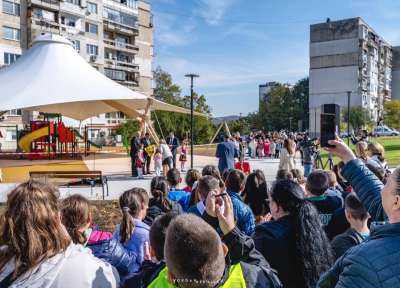 Каменов поздрави присъстващите:“ Надявам се тази площадка да стане любимо място за игра на най-малките жители на нашия град. Тук те ще могат да се забавляват през цялата година, както в слънчевите дни, така и в по-дъждовни дни. Нека ние родителите да се грижим за нея и да я пазим, за да даваме добър пример на децата и те да правят същото“.