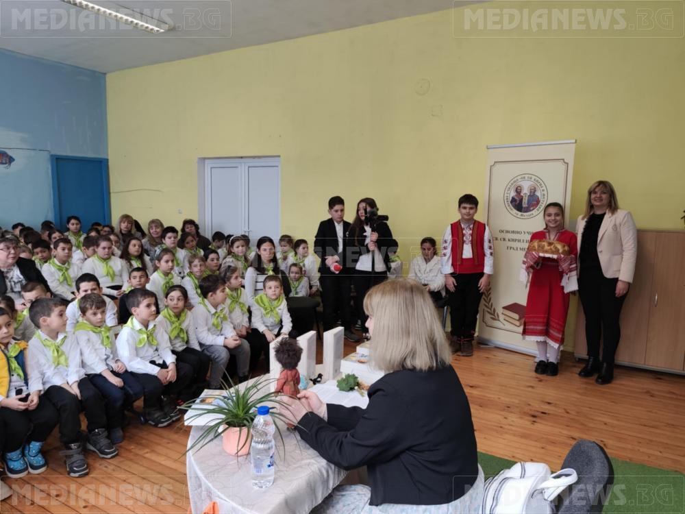 В знак на признателност директорът на училището Нели Найчова, подари на гостенката картина и ѝ връчи благодарствено писмо, отправяйки топли думи за сътрудничеството и приноса ѝ към духовното развитие на учениците.