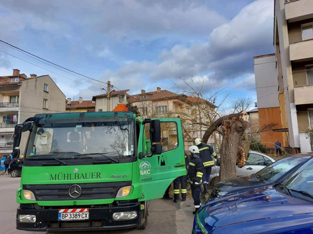 Паднала е витрина на магазин за електроуреди, като за а щастие няма пострадали. Увредени са два автомобила от съборените дървета.