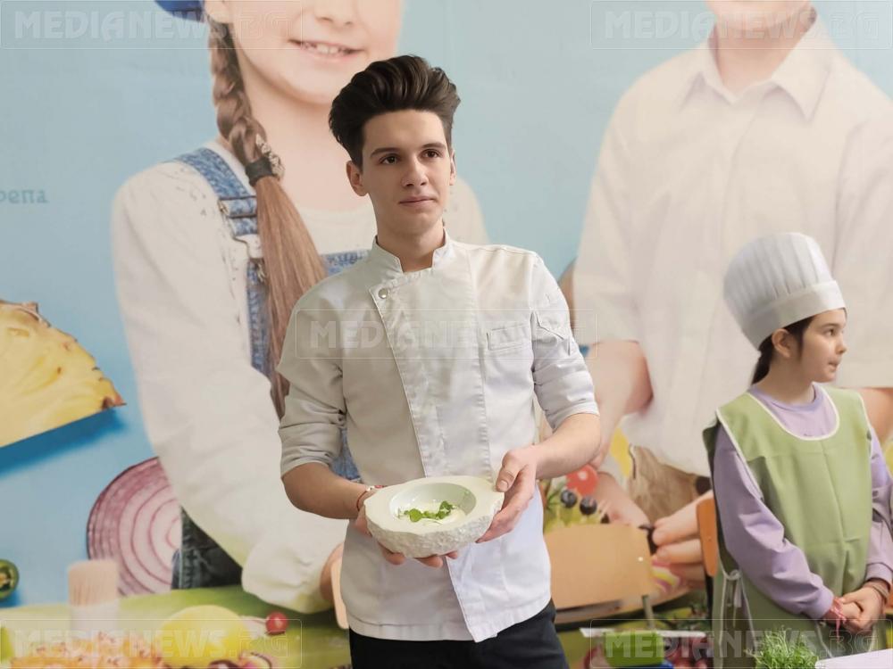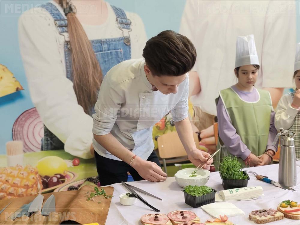 Кулинарни тънкости пред децата демонстрира 17-годишният Тихомир Димитров, възпитаник на ПГ „Алеко Константинов“ – Мездра. Въпреки че е все още в училище, вече е овладял завидни кулинарни техники.