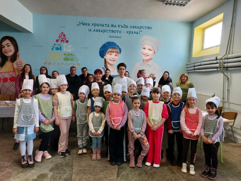 Бъдещият готвач представи атрактивна презентация, показвайки на първокласниците в ОУ „Христо Ботев“ как добре познатите им продукти могат да се превърнат в здравословни изкушения, приготвени по нов и интересен начин.