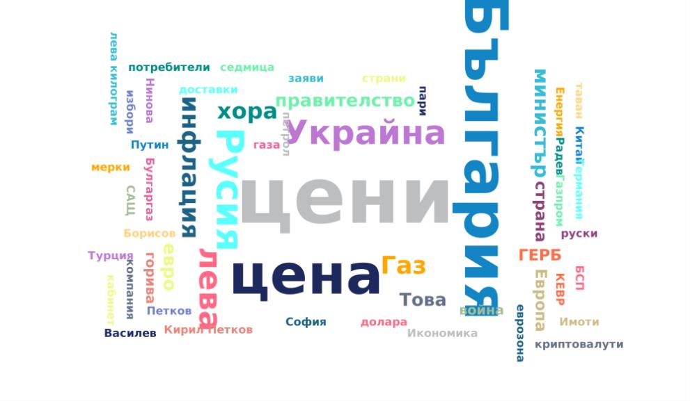 Анализът на системата за глобален медиен мониторинг и анализи Sensika показва 20-те най-често споменавани думи в периода 1 януари – 31 декември 2022 г. С помощта на софтуерни инструменти и модели за машинно обучение, тренирани на български език, са проверени 11 милиона и 300 хиляди публикации в 7993 онлайн информационни източника – новинарски сайтове, портали, сайтове на електронни медии, блогове и др. Оказва се, че най-използвани са „България“, „Русия“, „Украйна“, „война“, „Европа“, „САЩ“, „политика“, „министър“, „цена“, „дете“, „помощ“. Сред класиралите се в първите 20 са и „газ“, „енергия“, „управление“ и „икономика“.