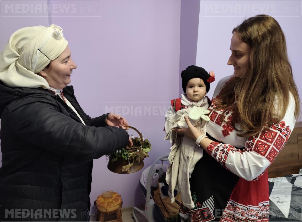 Празничните ритуали се проведоха в дома на младата майка Аделина и седеммесечния Никола.