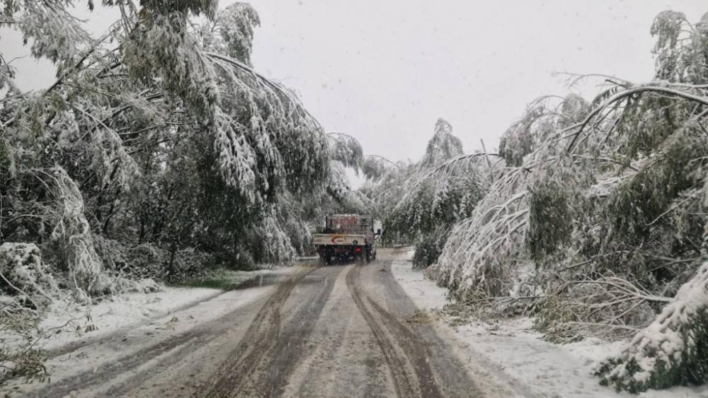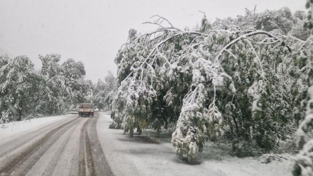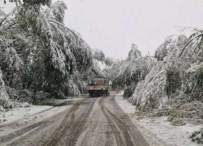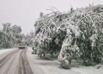 За премахване на паднали дървета е спряно движението на всички автомобили и по третокласния път III-162 Лакатник - Долна Бела Речка в областите Монтана и Софийска.