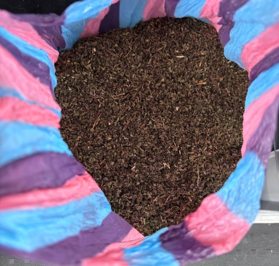 При извършените процесуално-следствени действия е намерен и иззет полиетиленов плик, съдържащ суха зелено-кафява листна маса, която при направения полеви тест реагира на амфетамин, с общо тегло 722 грама.