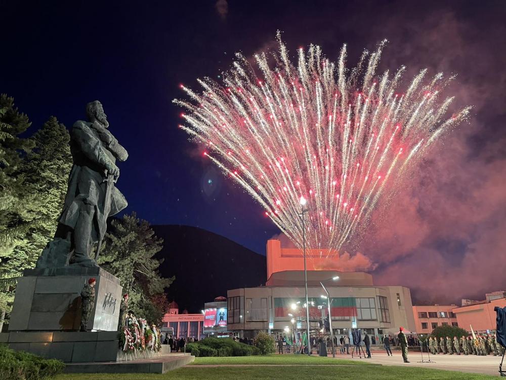 В края на церемонията, под звуците на музика, небето над града бе озарено от внушителна заря.