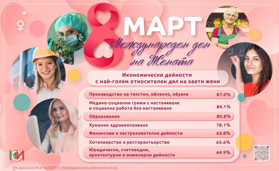 Инфографиката е изготвена от НСИ по случай Международния ден на жената – 8 март.