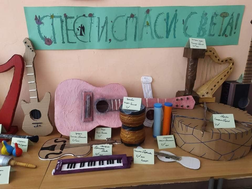 Фотоизложба на тема “Това на нас не ни харесва“ – престави безотговорното изхвърляне на отпадъците в града. Като алтернатива на това, учениците от 5-те класове подредиха изложба на музикалните инструменти, направени от отпадъчни материали – проектна дейност в часовете по иновативен предмет финансова грамотност, човекът и природата и музика.