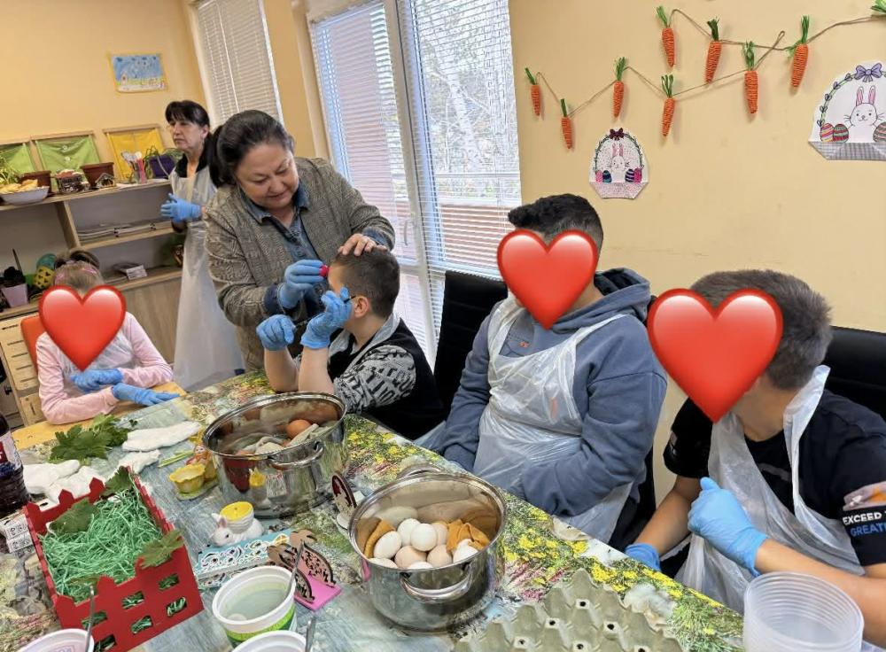 Децата, заедно със специалистите от центъра, се включиха в традиционното боядисване на яйца – един от най-обичаните български обичаи. С много усмивки, въображение и пъстри цветове те създадоха красиви великденски яйца и внесоха празнично настроение.