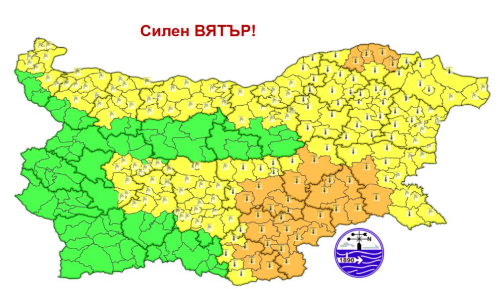 Вятърът в по-голямата част от страната ще се ориентира от северозапад и ще е умерен, в Дунавската равнина и западната част на Горнотракийската низина той ще е временно силен. Ще продължи да нахлува хладен въздух.