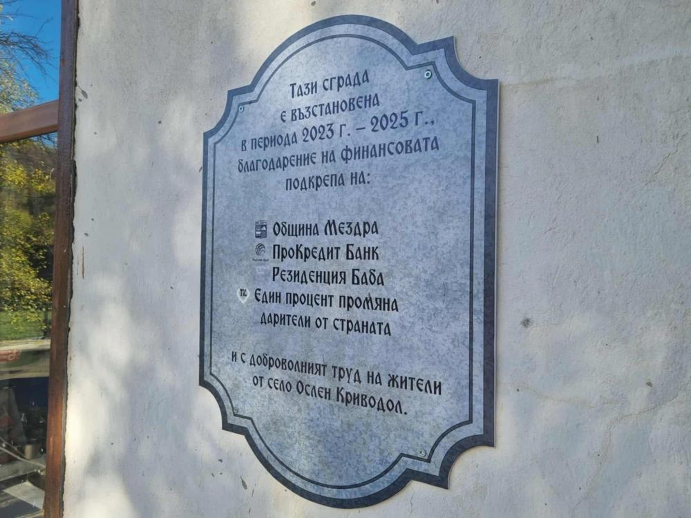 Сградата, построена през далечната 1950 г. с дарителски средства и доброволен труд на местните жители, е била спасена от разруха благодарение на мащабен ремонт, продължил две години. Инициативата за възстановяването е на Народно читалище „Развитие-2022“ и Кметство с. Ослен Криводол, подкрепени от Община Мездра, множество дарители и доброволния труд на местното население.