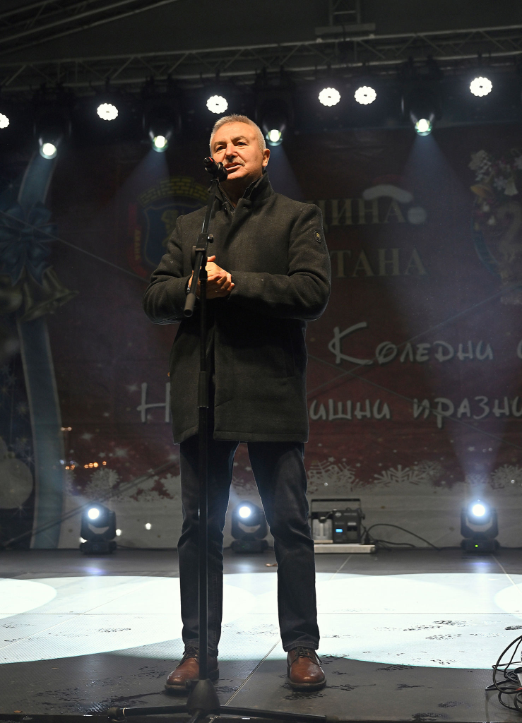 Кметът на Монтана Златко Живков поздрави събралите се на централния площад „Жеравица“ и заяви, че Монтана изпраща изключително успешна година с много реализирани проекти и подобрена инфраструктура. Той посочи, че в близките дни Монтана ще отбележи 134-тата годишнина от обявяването на селището за град и отново ще има празник. В Дните до настъпването на новата година ще има богата празнична програма с концерти, изложби, забавления за децата, спортни прояви.