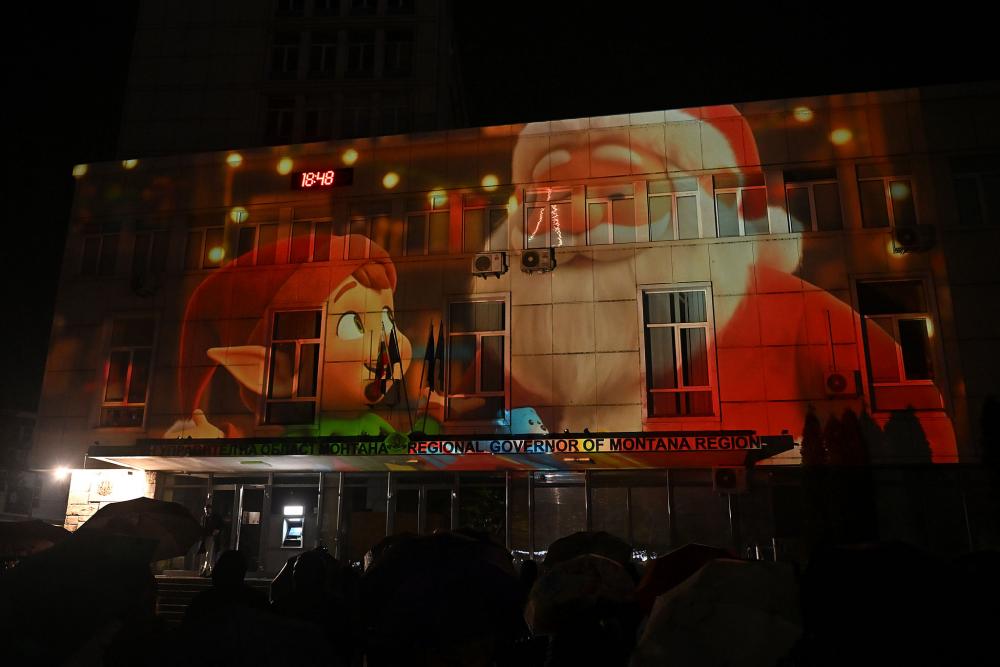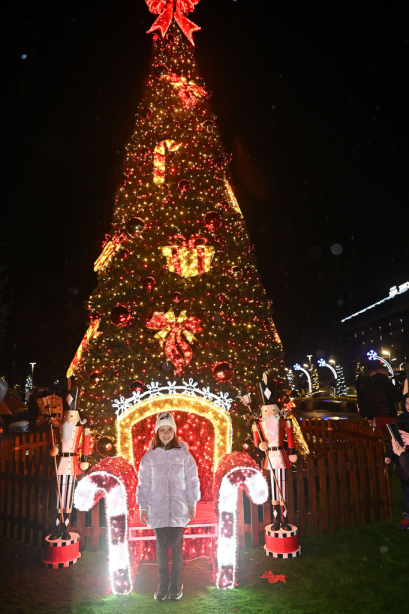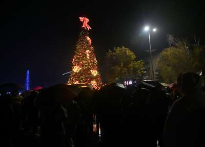Въпреки проливния дъжд, който се излива в Монтана, за запалването на елхата се събраха много хора, които престояха около час на открито и си направиха снимки със запалената вече елха.