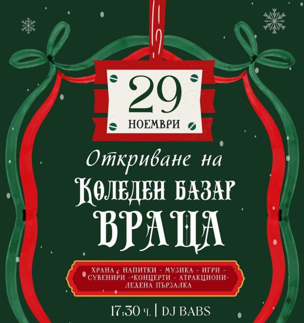 На 29 ноември (събота) от 17:30 ч. на площад „Христо Ботев“ официално откриват Коледния базар във Враца.
