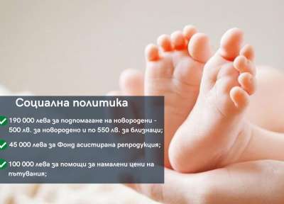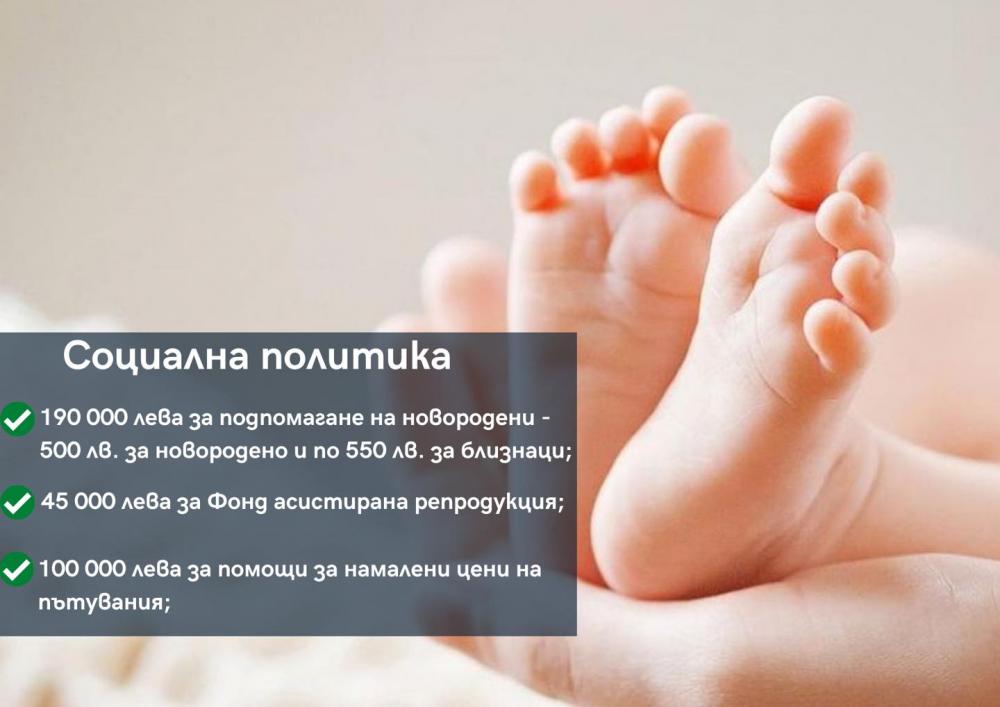 190 000 лв. за подпомагане на новородени – 500 лв. за новородено и по 550 лв. за близнаци;