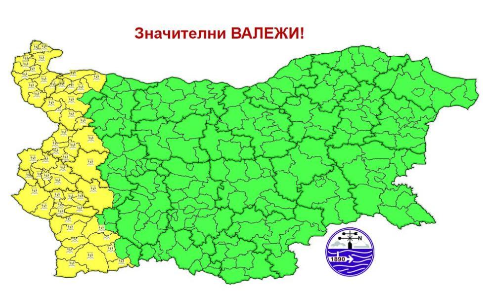 Вечерта валежите ще отслабват и спират, а облачността ще започне да се разкъсва и намалява. Ще духа до умерен вятър от изток-югоизток, главно в Лудогорието ще е временно силен. Максималните температури ще са между 12° и 17°, в София – около 12°.