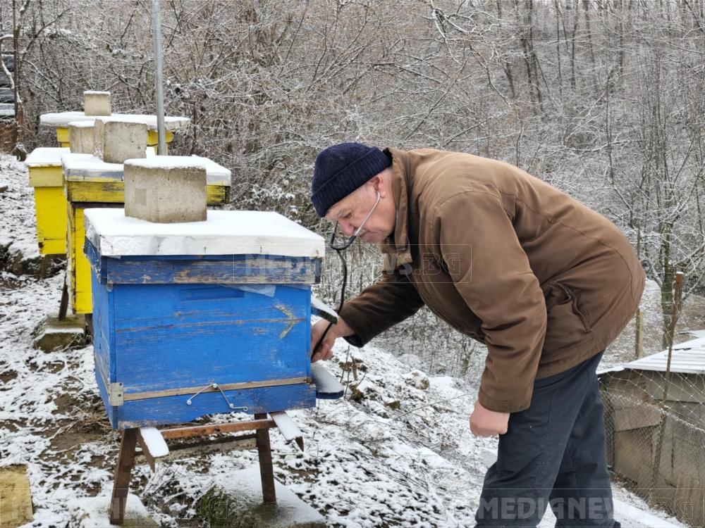 „Прослушвам със слушалка – такава като на лекарите. Слагам я, чукам върху кошера и ако се чува шум, който утихва веднага, значи пчелинът е спокоен и не е необходимо да се безпокои. Ако се чува кършене на дърво, това значи липса на храна. В този период слагам захаросан мед, разтопен с малко пудра захар в него. Правя питка и я слагам отгоре“, разкри още пчеларят.