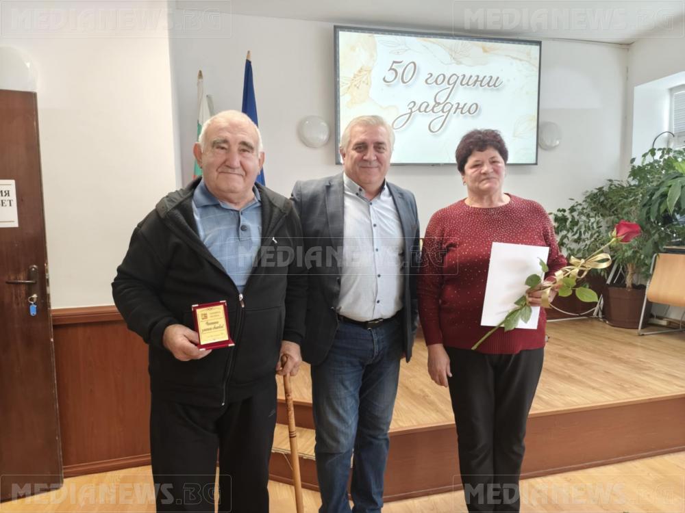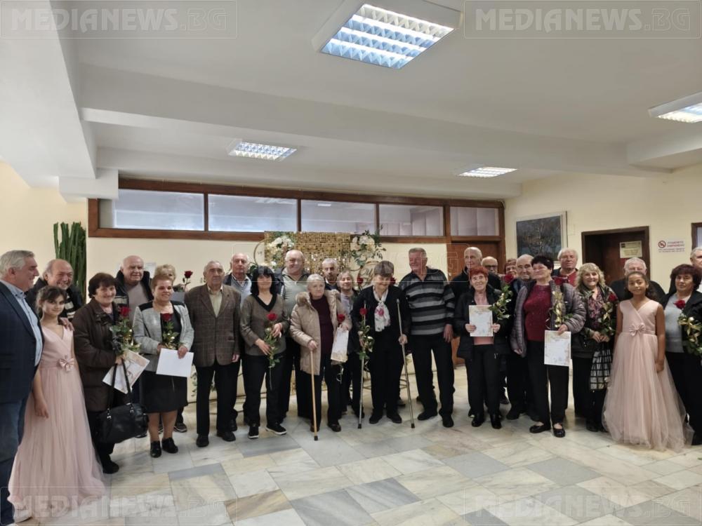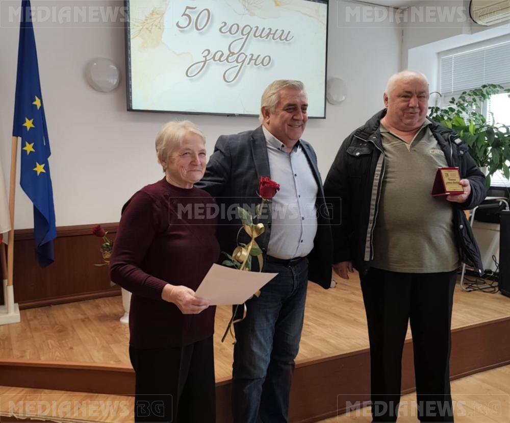 Семействата получиха удостоверения за златна сватба. Дамите бяха зарадвани с червена роза и грамота, а господата – с почетен плакет.
